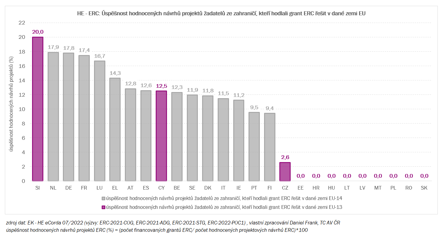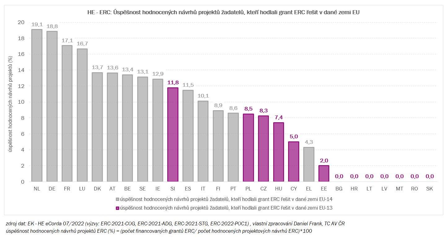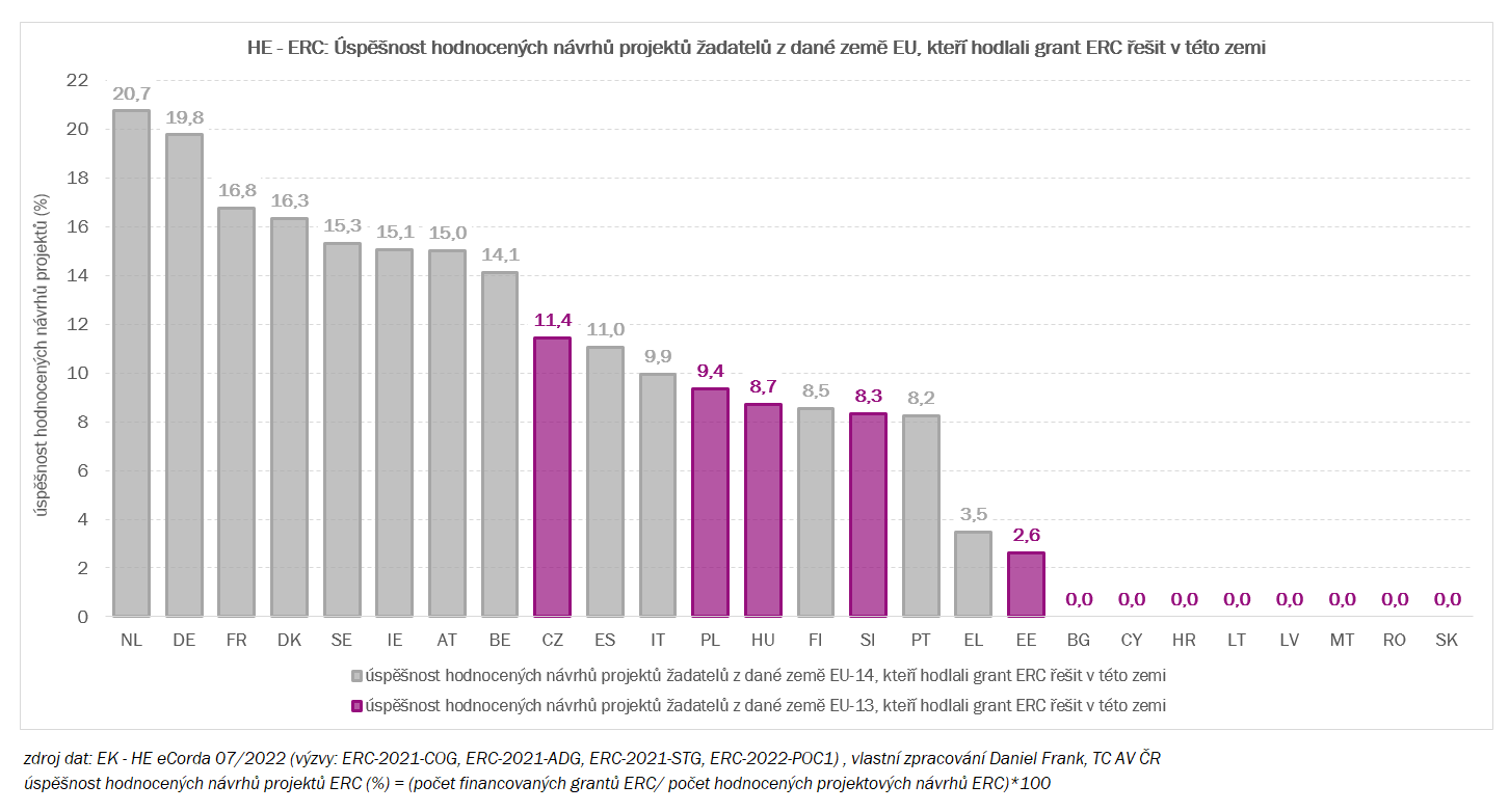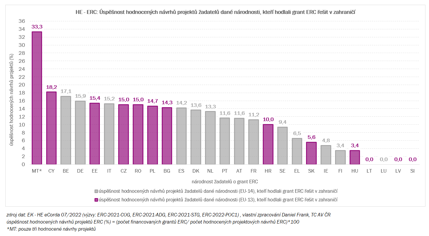 Ve strukturách RP těžko najdeme oblast, která se těší většímu zájmu u odborné veřejnosti i samotných výzkumníků, než jsou granty Evropské rady pro výzkum - ERC. Účast v projektech tzv. hraničního výzkumu je velmi často předmětem nejrůznějších analýz a přehledových statistik. Některé z nich prezentuje samotná ERC, další jsou publikovány v analytických výstupech EK či v národních zprávách o účasti v RP, případně v dalších dokumentech týkajících se oblasti VaVaI. Jedním z nejčastěji uváděných a kalkulovaných statistických výstupů je úspěšnost projektových návrhů předkládaných uchazeči o grant ERC prostřednictvím výzev daného RP.