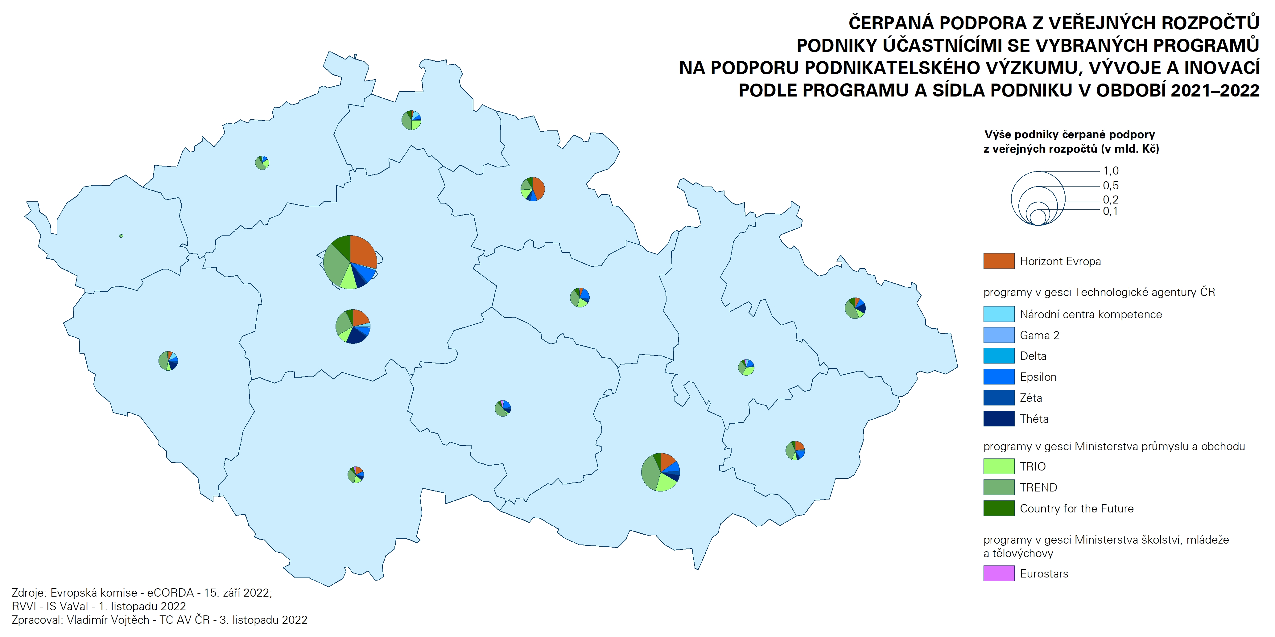 Z programu Horizont Evropa dosud (tj. k 15. září 2022) tuzemské podniky nárokovaly příspěvek EU ve výši 26,4 mil. €, tj. 662 mil. Kč. Podobně velkou podporu ze státního rozpočtu ČR získaly i podniky účastnící se končícího programu TRIO (480 mil. Kč). Podpora podnikům ze společného programu Technologické agentury ČR a Ministerstva průmyslu a obchodu TREND dosud (k 1. listopadu 2022) dosáhla 1,1 mld. Kč. Program TREND je zaměřený na zvýšení mezinárodní konkurenceschopnosti tuzemských podniků prostřednictvím podpory průmyslového výzkumu a experimentálního vývoje a zavedením jejich výsledků do průmyslové výroby a nabídky produktů. Program je zaměřen nejen na podporu tvorby výsledků výzkumu a vývoje a jejich využití v podnikatelské činnosti u podniků s existujícími výzkumnými a vývojovými aktivitami, ale i na nastartování vlastních výzkumných a vývojových aktivit u podniků, které dosud neuskutečňují pravidelný výzkum a vývoj.
