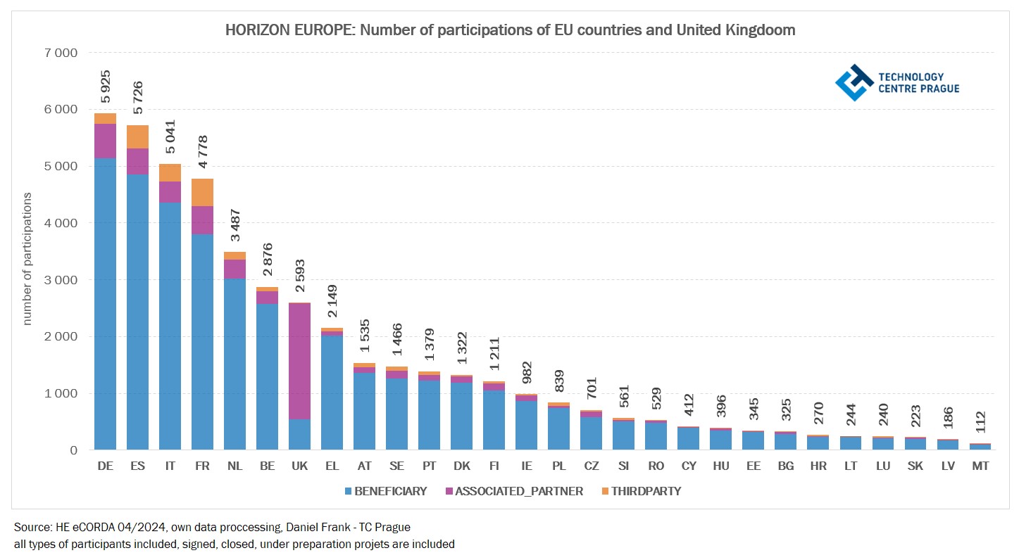 Figure 1 - Horizon EUROPE: Number of Participations of EU Countries and United Kingdoom
