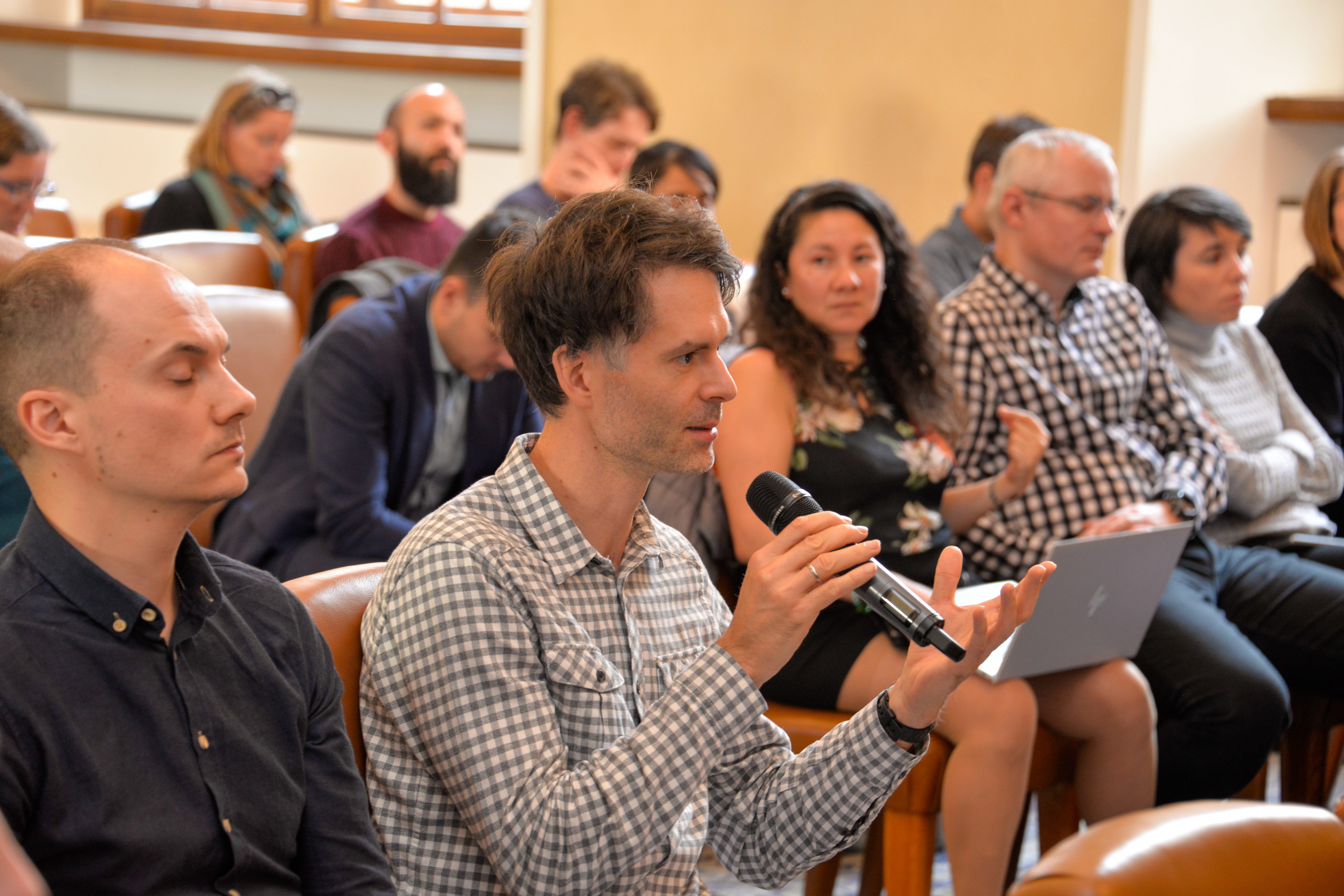 Odpolední blok přinesl pohled samotných žadatelů na přípravu úspěšného projektového návrhu. O své zkušenosti se podělili dr. Paulo Paioti (ÚOCHB AV ČR), doc. Michal Smetana (FSV UK) a dr. Petr Těšina (CEITEC MU). Vzápětí hlavní řešitelé, kteří dobře znají české výzkumné prostředí, ale rozhodli se implementovat své projekty v zahraničí, srovnali, jak funguje podpora pro žadatele mimo ČR. Na rozdíly v institucionálních procesech upozornili dr. Pavel Tomančák (MPG, Německo) a prof. Martin Vohralík (Inria, Francie).