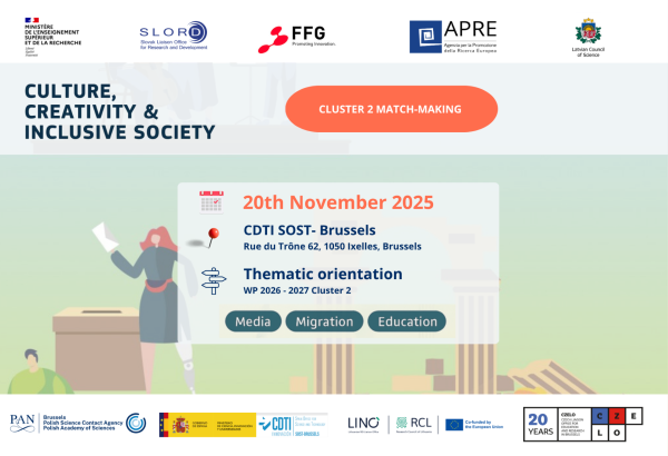 Česká styčná kancelář pro vzdělávání a výzkum spolu s dalšími kancelářemi v Bruselu pořádá matchmakingovou akci zaměřenou na nadcházející výzvy Klastru 2 pro období 2026 - 2027. Témata spolupráce budou určena Destinacemi 1 a 3, tj. oblastí médií, migrace a vzdělávání.