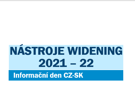 Technologické centrum AV ČR ve spolupráci se slovenskou Národní kanceláří Horizontu zve na online informační den k nástrojům Widening, který se bude konat dne 31. 8. 2021 (cca od 9:30 do 15:00 hod., s půlhodinovou přestávkou na oběd). Předběžný návrh programu: