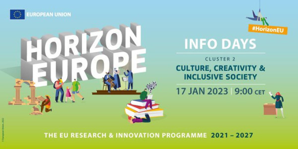 Evropská komise organizuje 17. ledna 2023 informační den k části programu Horizont Evropa Kultura, kreativita a inkluzivní společnost. Během celodenního přenosu zazní postupně informace ke všem výzkumným tématům, která se otevřou pro rok 2023. Předkládání návrhů projektů se otevírá 14. prosince, uzavírá 14. března 2023.
