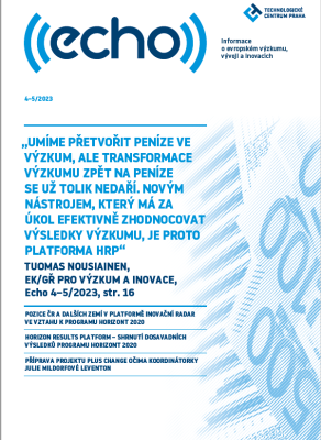 Čtvrté vydání časopisu ECHO v letošním roce se z velké části věnuje dopadům programu Horizont 2020 ve formě inovací a klíčových využitelných výsledků, které vzešly z řešení jeho projektů.  V prvním článku jsou uvedeny statistické výstupy dat Platformy inovační radar, které se týkají členských zemí EU a dalších vybraných evropských států. Zvláštní pozornost je upřena na aktuální pozici ČR v této platformě. Druhý článek shrnuje dosavadní výsledky programu Horizont 2020 publikované a zveřejněné v platformě Horizon Results Platform, která je klíčovým nástrojem evropské valorizační politiky a jejímž cílem je zajistit šíření a využívání výsledků projektů evropských programů zaměřených na výzkum a inovace. Zkušenosti s vedením projektu Plus Change sdílí v rozhovoru pro ECHO profesorka Julie Mildorfova Leventon z CZECHGLOBE, která má na starosti jeho koordinaci. Další dva projekty koordinované českými institucemi jsou představeny v příspěvku, který monitoruje působení ČR ve výzvách programu Horizont Evropa pro roky 2021–2022 v Klastru 1 – Zdraví. Toto vydání ECHA ještě doplňují krátká úvaha o rozdílech ve výzkumné, vývojové a inovační výkonnosti nových a starých členských zemí EU, která se promítá i do účasti v RP, a analýza nejcitovanějších českých publikací od roku 1980 do současnosti.