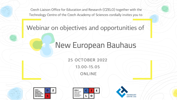 Česká styčná kancelář pro vzdělávání a výzkum v Bruselu CZELO organizuje společně s Technologickým centrem AV ČR webinář na téma Nového evropského Bauhausu. Akce proběhne online 25. října 2022 od 13:00 – 15:05 hodin.
