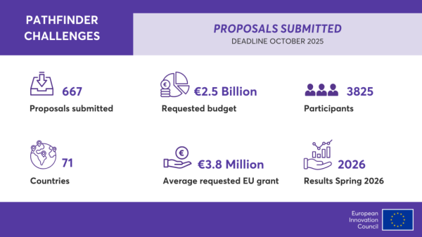 Do výzvy EIC Pathfinder Challenges 2025, která se uzavřela ve středu 29. října, bylo celkově podáno 667 návrhů projektů. Počty žádostí do jednotlivých Challenges jsou následující: