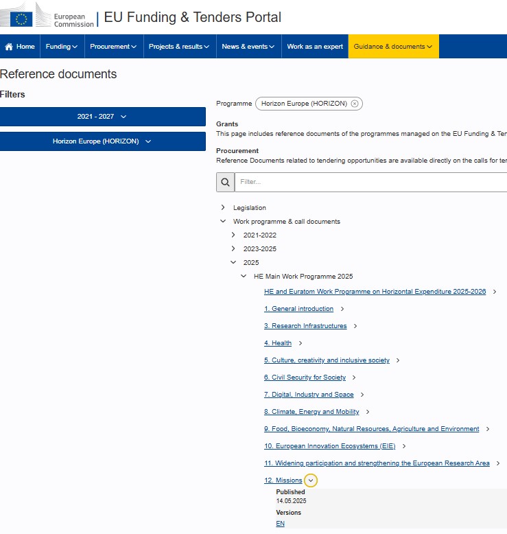 Dne 14. května 2025 EK zveřejnila pracovní programy HE na FTO portálu. Naleznete je v sekci Guidance and Documents: Reference Documents | EU Funding & Tenders Portal